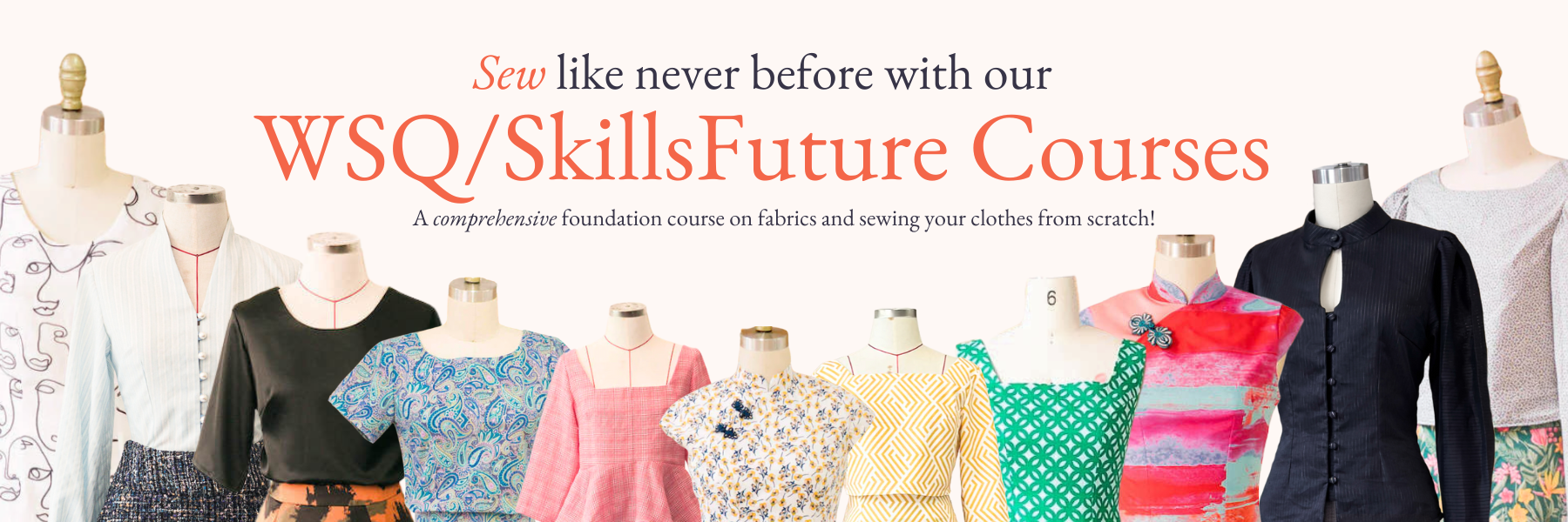 Welcome to our WSQ-certified course where we will provide you with a comprehensive foundation course on fabrics and how to create your own clothes from scratch!
