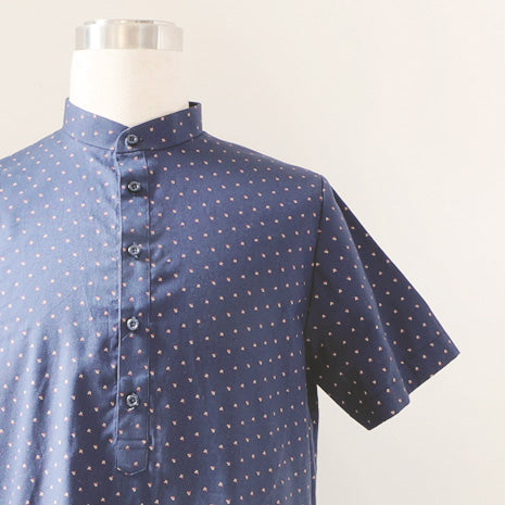 Menswear stand-collar shirt with half-placket & short sleeves, a season-less staple that's both smart and casual. Make them in different fabrics! The short sleeves are perfect for our tropical weather. Easy-to-wear and versatile, this shirt will face endless rotations in your wardrobe!